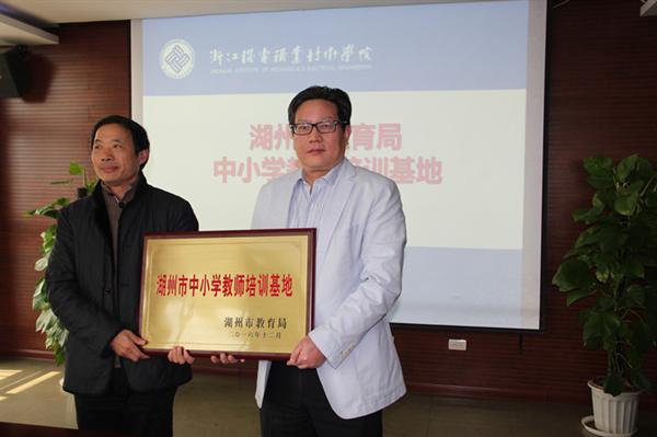 3月1日上午,湖州市教育局在我院举行“湖州市中小学教师培训基地”授牌仪式,湖州市教育局和教师继续教育中心相关领导,我院王建林副院长出席了授牌仪式。这是本学期继我院成为国家级高技能人才培训基地之后又一个落户我院的培训基地。