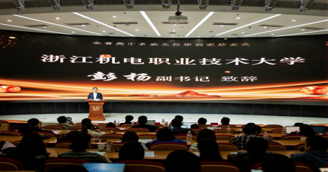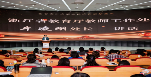 10月30日上午,2025年全省高中名班主任培训班结业典礼在我校隆重举行。省教育厅教师工作处处长牟凌刚、浙江省教育科学研究院副院长庞红卫、基础教育研究所所长林莉、我校党委副书记彭杨、继续教育学院院长温长胜出席结业典礼,全省高中名班主任培训班全体学员参加活动。