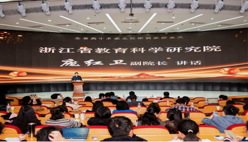 浙江省教育科学研究院庞红卫副院长在讲话中总结了本次培训的特色。最后他寄语学员一定不负时代、不负韶华、不负重托,在各自的工作岗位上再创佳绩。