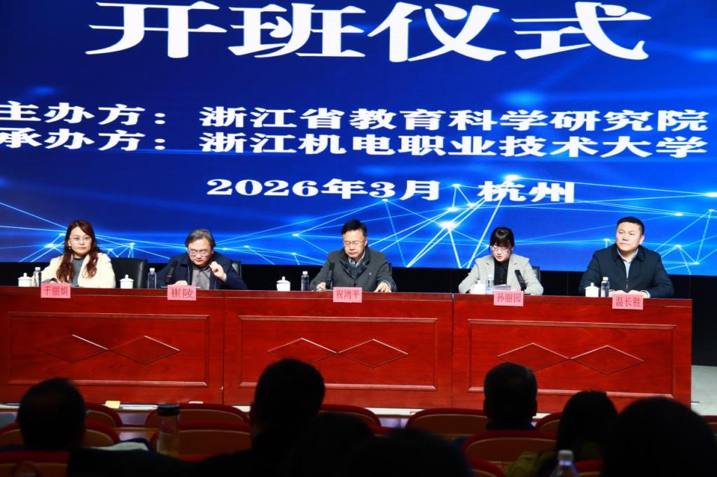 春潮涌动启新程,笃行致远促发展。为深入贯彻落实现代职业教育体系建设改革要求,深化中高职一体化课程改革,提升中职教师专业素养与数字化教学能力,2026年3月23日下午,浙江省中高职一体化自动化类教材运用培训班与浙江省中职学校教师数字素养赋能教学高研班开班仪式,在浙江机电职业技术大学顺利举行。来自全省各地中职学校的骨干教师齐聚一堂,开启为期5日的集中研修之旅,共同探索职教改革新路径、提升教学实践新能力。