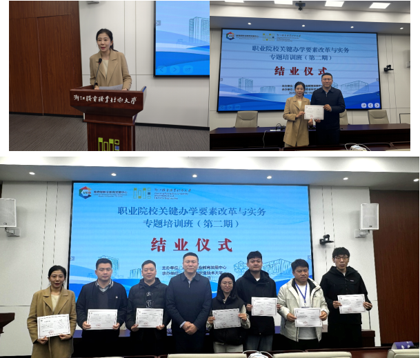 3月18日下午培训班结业仪式在校举行。参训学员代表上台汇报分享了本次培训的学习收获与心得体会,结合院校办学及教学管理实际,畅谈了对职业院校关键办学要素改革的新认知,梳理了将培训所学转化为办学实践的具体思路与举措。学员们纷纷表示,本次培训课程设计精准贴合职业院校教学管理工作需求,专题授课兼具前沿理论高度与一线实践深度,现场教学直观展现了优质职教实训基地的建设运营成果,收获颇丰、启发良多,不仅更新了办学理念、提升了业务能力,还搭建了同行交流合作的桥梁,后续将把培训所学与院校发展实际相结合,稳步推进教学改革,切实把学习成果转化为办学实践,助力学校办学质量与人才培养水平提升。
