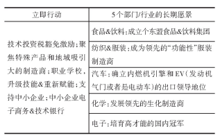 印度尼西亚政府“制造印尼4.0”发展战略选出了5个行业,分别是食品&饮料、纺织&服装、汽车、电子、化学,预估收益GDP增长1%~2%;额外增加工作岗位超过1 000万,制造业对GDP的贡献超过25%。根据2018年世界经济论坛(World Economic Forum)和全球研究公司科尔尼(A.T.Kearney)9月份联合发布的报告“塑造东盟未来促进制造业和生产的准备合作”,归纳印尼五大行业部门的长期愿景以及当前采取的一些立即行动见表4,对标“制造印尼4.0”路线图和“印尼视野2045”,印尼急需的专业人员情况见表5。