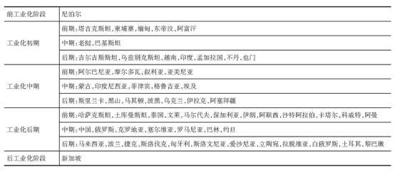 表2“一带一路”沿线国家工业化发展阶段情况[3]