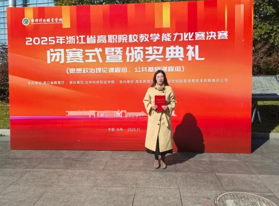 11月24日,2025年浙江省高职院校教学能力比赛的决赛圆满落幕。马克思主义学院王平平老师在决赛中表现优异,荣获二等奖!