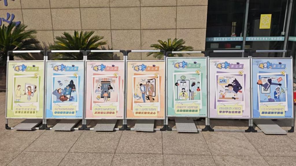 阵地筑“宣传堡垒”,安全意识融入日常。学校安全保卫部联合社区民警在新生高频活动区域加大宣传力度,校警一起发放《致全体学生的一卦公开信》《防诈骗入寝宣传告知书》等安全提醒材料;在食堂门口,布置反诈主题展板与宣传喷绘,喷绘以“案例+解析”的形式,用真实涉校诈骗案例剖析诈骗分子的作案逻辑与隐藏手段,搭配醒目警示标语;展板则设计简洁易记的反诈口诀与校园安全提示,将安全知识融入新生日常通行场景,通过直观的视觉冲击,让安全意识潜移默化深入人心。