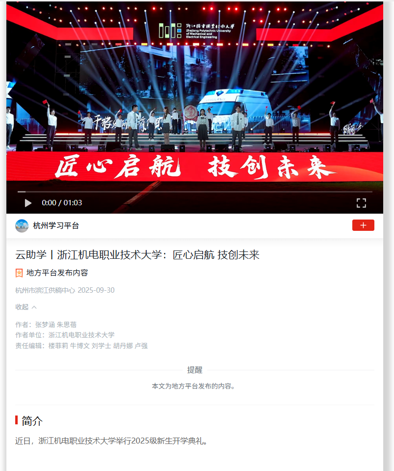 [学习强国 杭州学习平台]云助学丨浙江机电职业技术...