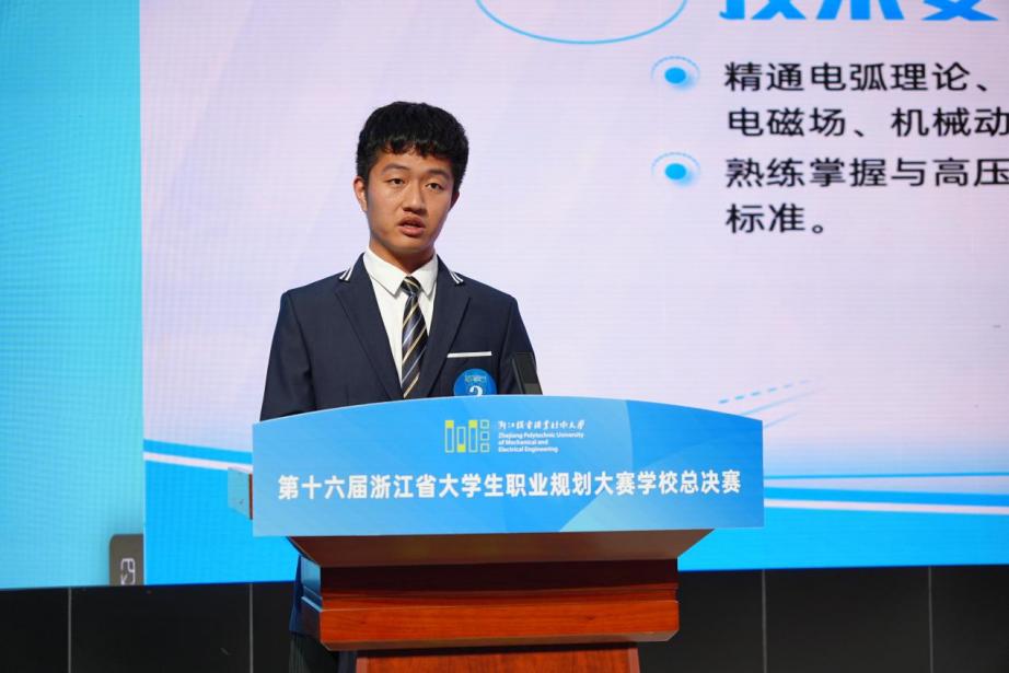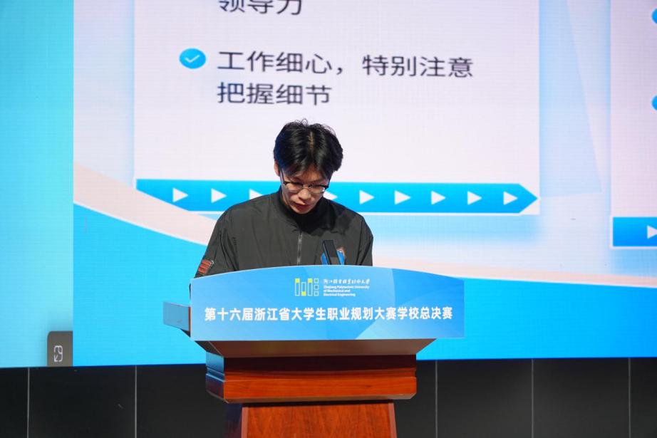 决赛现场气氛热烈,掌声不断。参赛选手紧扣大赛主题,依次进行职业规划陈述与现场答辩。他们结合个人兴趣、能力特质与职业价值观,深入剖析自我认知与职业认知,系统阐述职业生涯的决策逻辑、实施路径、动态评估与调整策略,展现出扎实的规划能力与清晰的成长视野。
