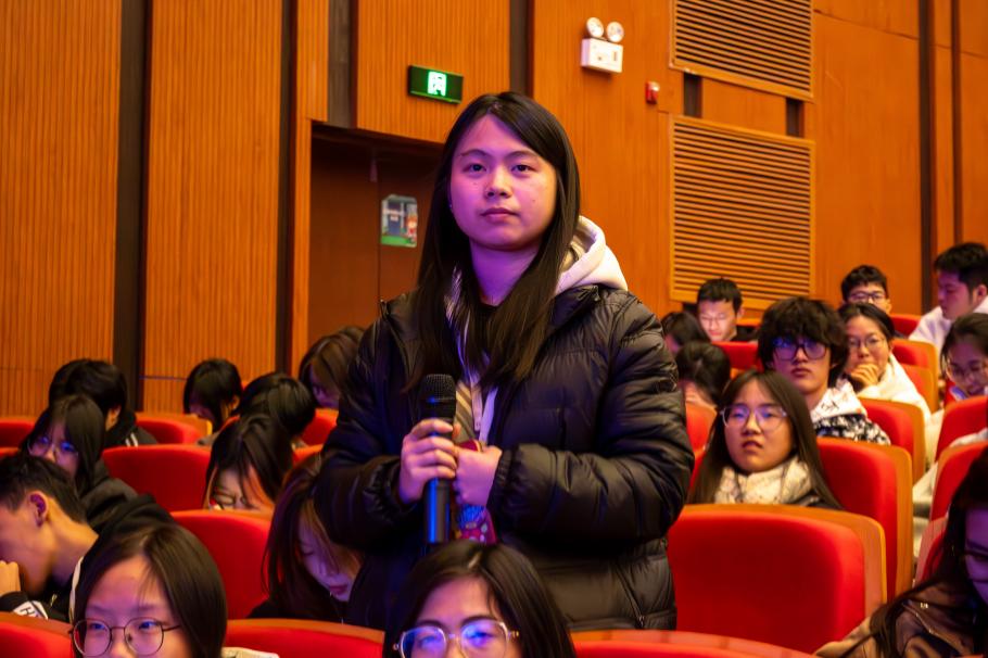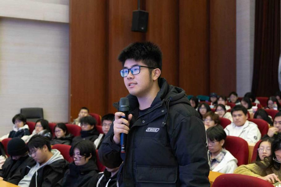 观众提问环节气氛火热!“如何做好时间管理?”“对未来发展有何建议?”——面对同学们抛出的一个个关键问题,国奖大神们从容接招,金句频出,倾囊相授。他们分享的核心经验包括:高效利用碎片化时间、专注当下并拒绝拖延内耗、坚持在实践中检验真知,以及全情投入并享受奋斗过程。