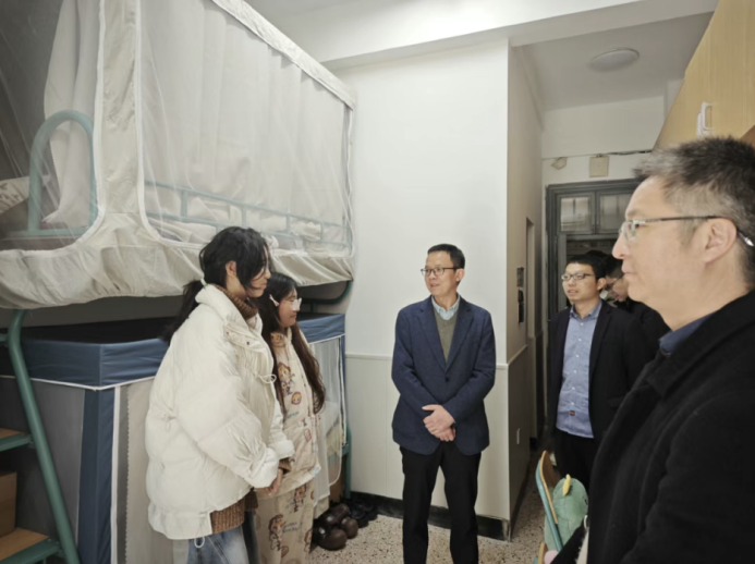 走访低年级学生寝室时,陈剑波细致了解同学们的课程安排、学业压力及考试情况,认真听取大家对学习生活环境的意见建议。他叮嘱随行人员及时回应学生关切,协调学校相关部门优化服务保障。一句句朴实的询问,传递着学校对学子生活的牵挂。他鼓励同学们在紧张学习之余多运动、多交流,保持身心健康,遇到困难及时与辅导员、班主任沟通,学校永远是大家坚强的后盾