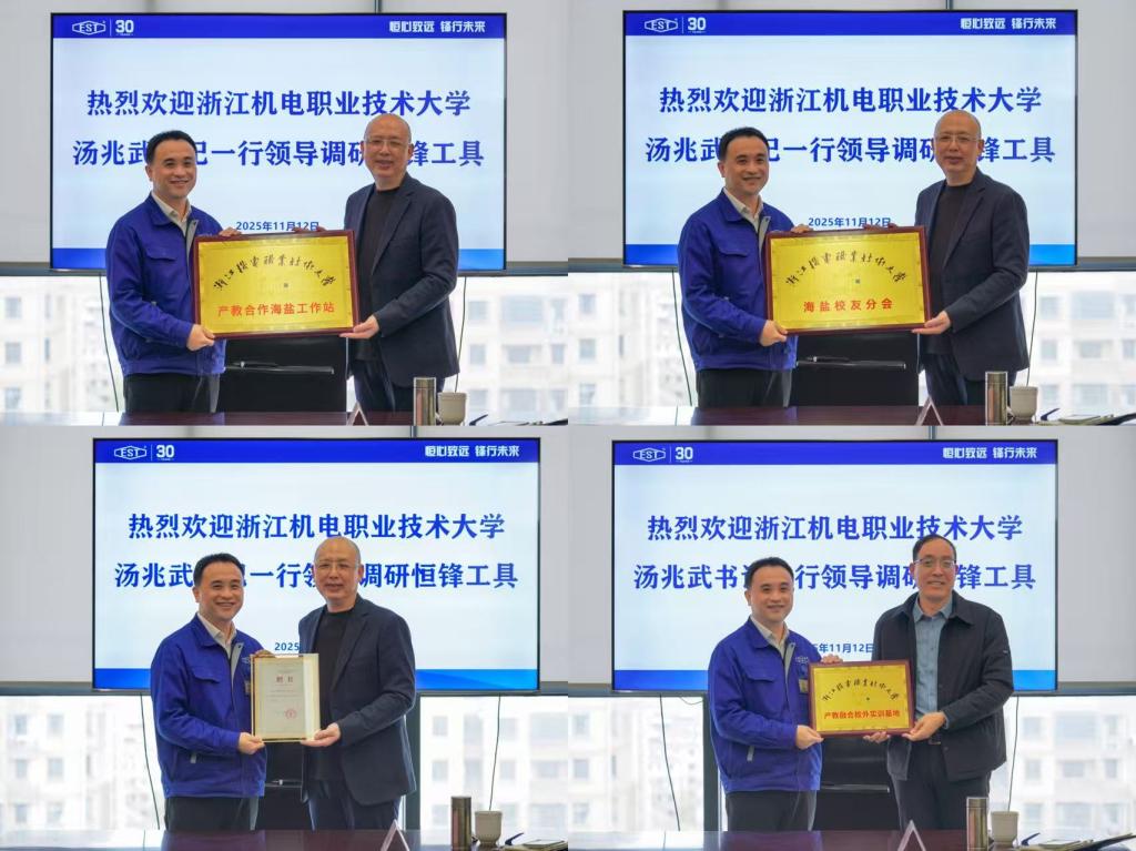 座谈会上,汤兆武对恒锋工具取得的突出成就表示赞许,并向企业介绍学校近年来发展成果。他表示,学校已顺利完成升格本科大学、管理体制转制等关键任务,高层次人才引进成效显著,海宁校区二期建设稳步推进。面对新形势,学校将持续深化产教融合、提升社会服务能力,继续加强与恒锋工具等优质校友企业的合作关系,共同打造学校与校友发展共同体,构建校企合作新范式。