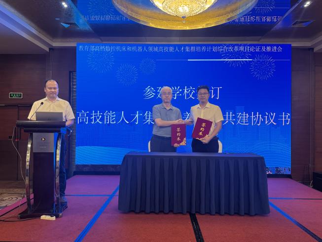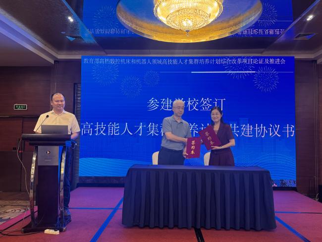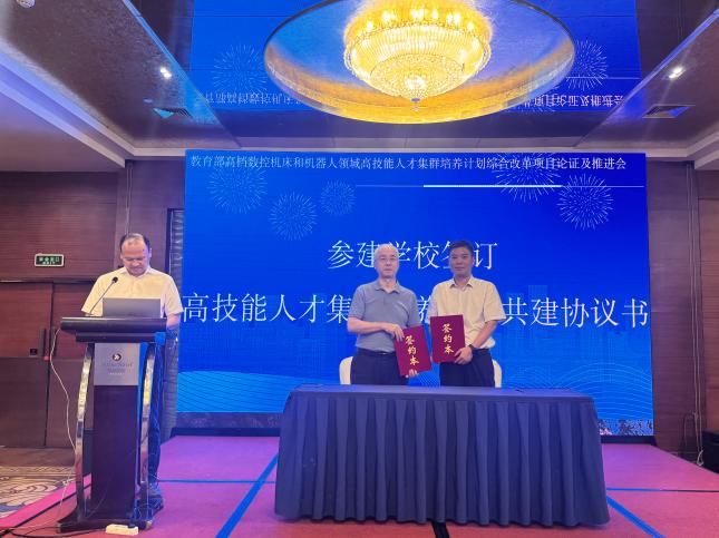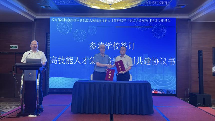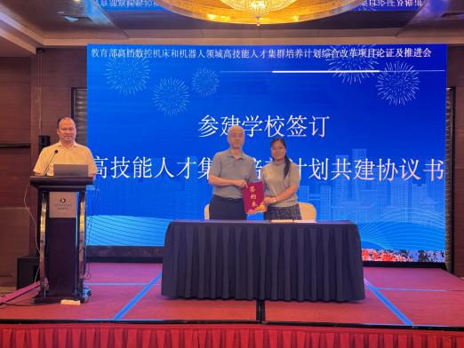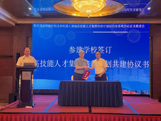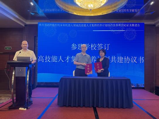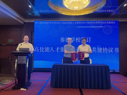 项目推进会上,贺星岳与各参建单位签订高档数控机床和机器人领域高技能人才集群培养计划项目共建协议书。各参建学校将按要求落实改革任务,为后续工作深入开展奠定基础。