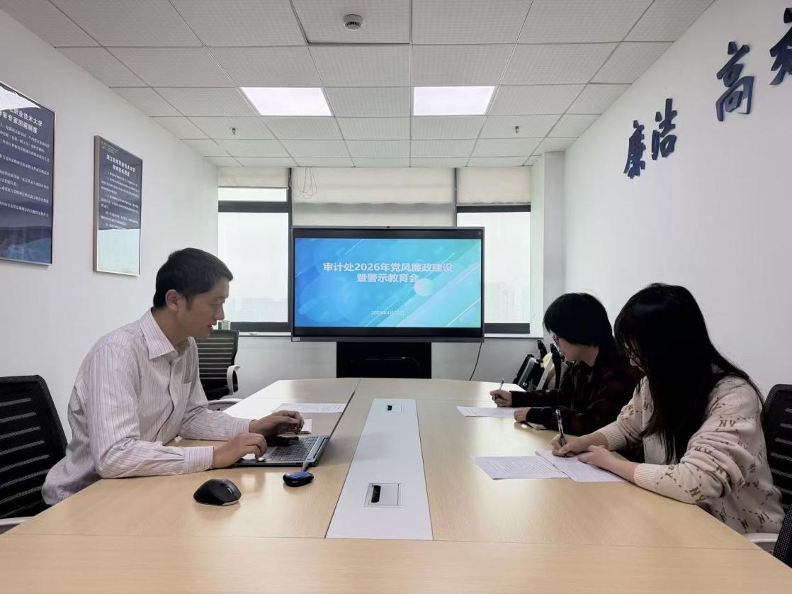为了深入贯彻落实全面从严治党要求,充分发挥审计监督作为推进全面从严治党的重要“利器”作用,强化学校审计人员廉洁自律意识,4月22日,审计处组织党风廉政建设暨警示教育会,以学正风、以廉立身,为学校“十五五”开局高质量发展保驾护航。会议由审计处处长鲁明主持,审计处全体职工参加会议。